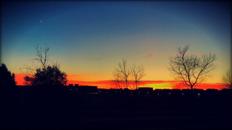Just as a bit of fun, I also took this picture too at the end of the day today. The buildings you see in silhouette are the plant where Toyota build their engines. I love the moon, I love the buildings and I really love the fiery glow from the setting sun.