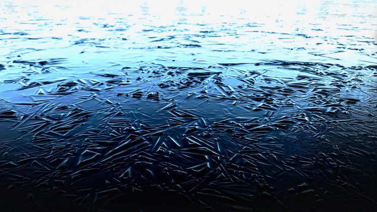 Finally, I noticed some really neat patterns in the ice around a corner of the lake. I think it might be formed by feet of water foul as the ice was forming, I’m not sure, but whatever I like it. I edited the second picture in such a way as to go from black at the bottom to white at the top.