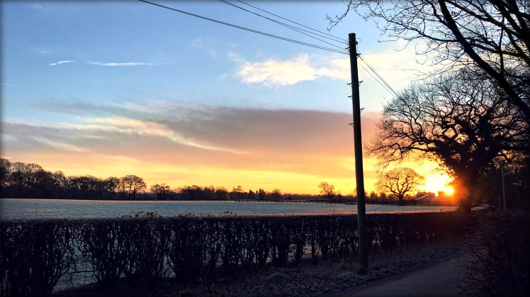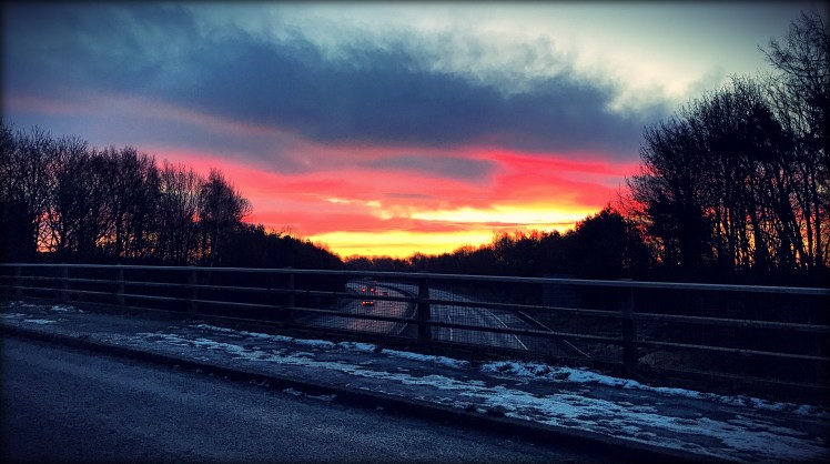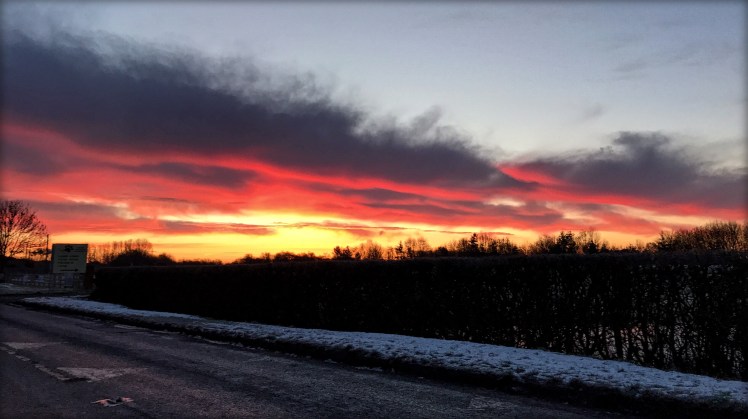 Along with the frozen ground, I couldn’t help but notice the fire in the sky, and stopped twice to take a picture.