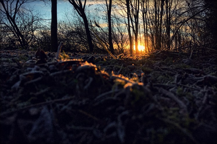 Learnings – as with yesterday’s pictures, today reconfirmed that natural light is king, and at sunrise and sunset you obviously have some incredible lighting shining on everything you see. I tried a couple of today’s shots with the main object dead centre, going against some rules of photographic composition. The first picture of the rays of light for example, with the sun in the very centre of the shot. I don’t like it as much as the second one, where the sun is off set and balanced with the glow of the leaf litter set to the left, it feels much more balanced and easy to look at. I really like that shot.