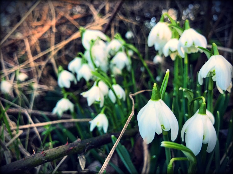 Sitting in amongst the brown twigs and leaf litter, sat some small clumps of snow drops, pushing their way up through the hard ground, and in doing so letting the rest of the world know winter is on its way into recent history. I picked these as today’s picture in honour of a friend on Instagram, called “apteryxgav“, who takes lovely pictures of flora and fauna, particularly snow drops. You can see his Instagram if you click his name here. So, this ones for you mate!