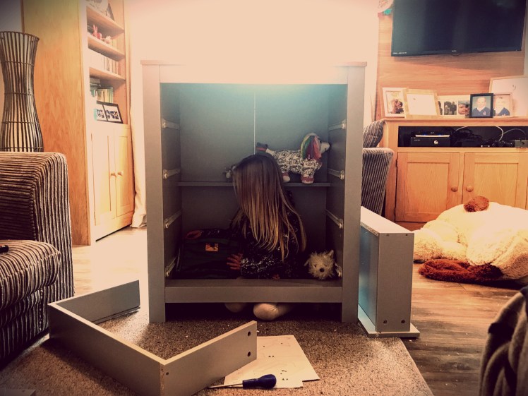 A bit of fun for today’s picture; a quickly claimed mid-build set of draws, instantly transformed into a play den.