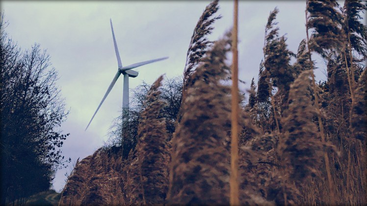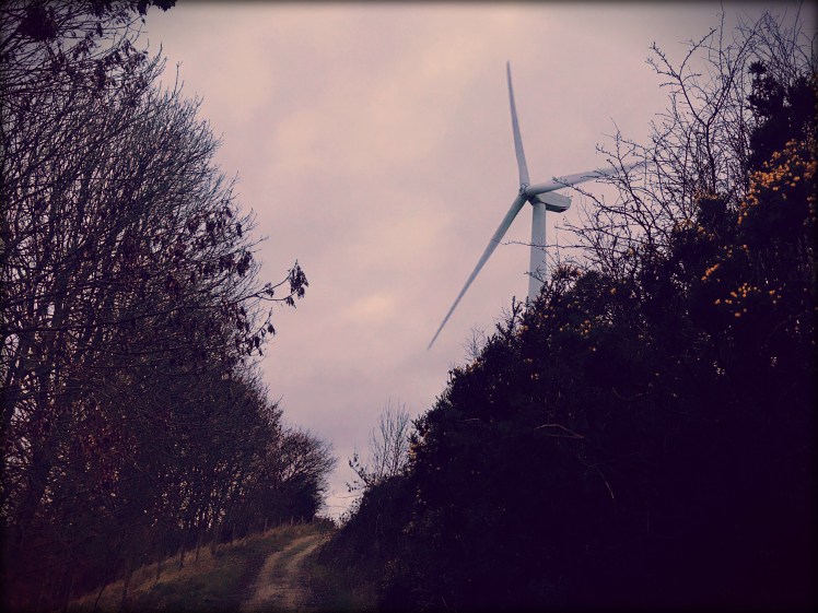 A couple of days ago I noticed a turning off to the left of my normal route home, that I had never ventured down before. Nothing unusual there, however a very brief glimpse of the wind turbines up real close down that turning, had caught my eye.