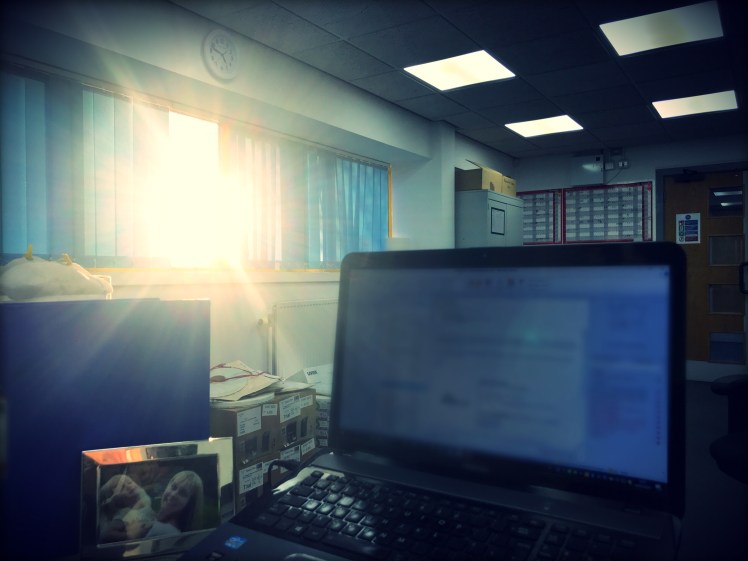That led to today’s picture, as the final throws of the days sun beamed brightly into the office, through a gap in the blinds.