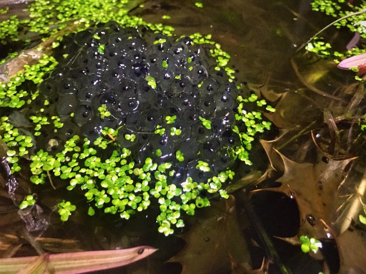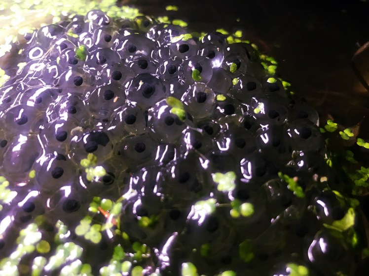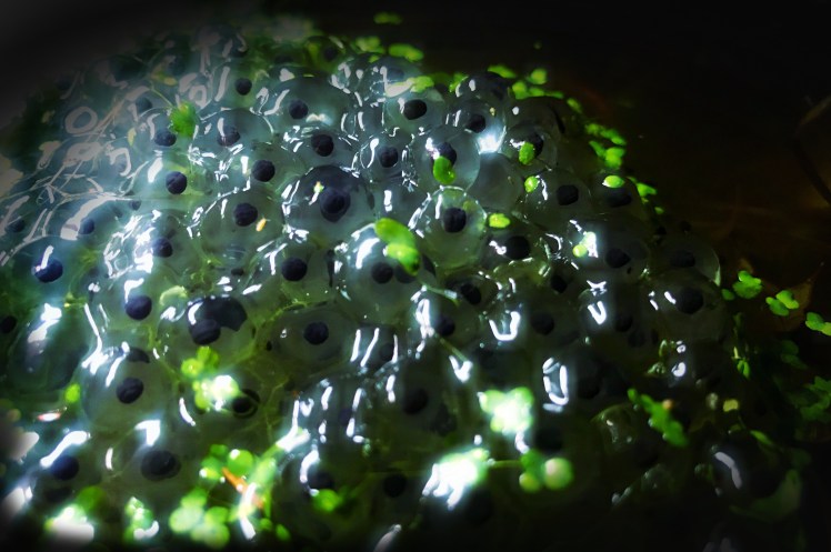 Then I noticed something really surprising, frog spawn! Again on the shot below, I’ve captured detail of the frog spawn, and the holly leaf – this was both pleasing on a technical level, and unsettling on an emotional one. Holly leaves and frog spawn should never be in the same picture, should they? This is another sign of the seasons merging, I feel.