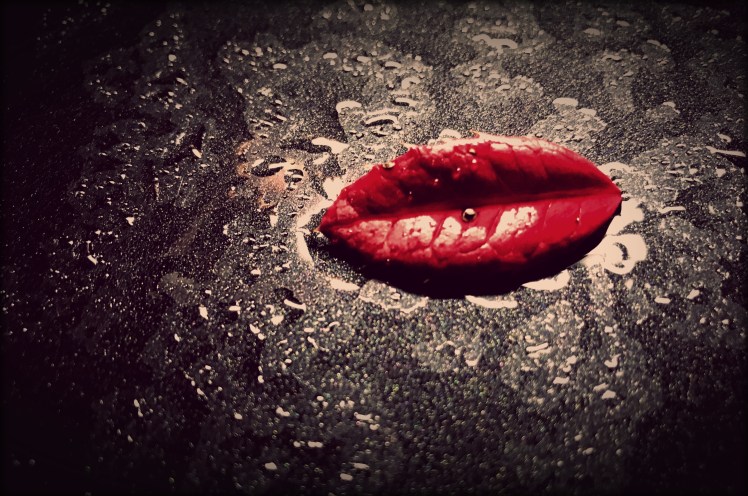 I don’t know about you, but to me the leaf looks for all the world like a pair of lips, and the very solitary subject matter really changes the whole feel of the pictures.