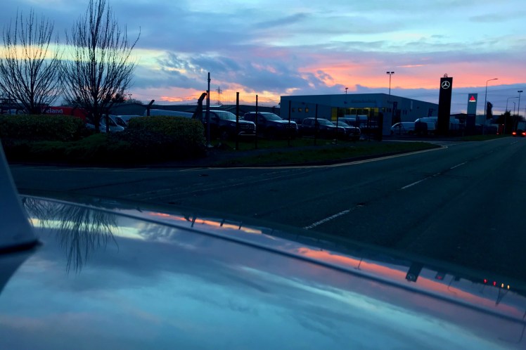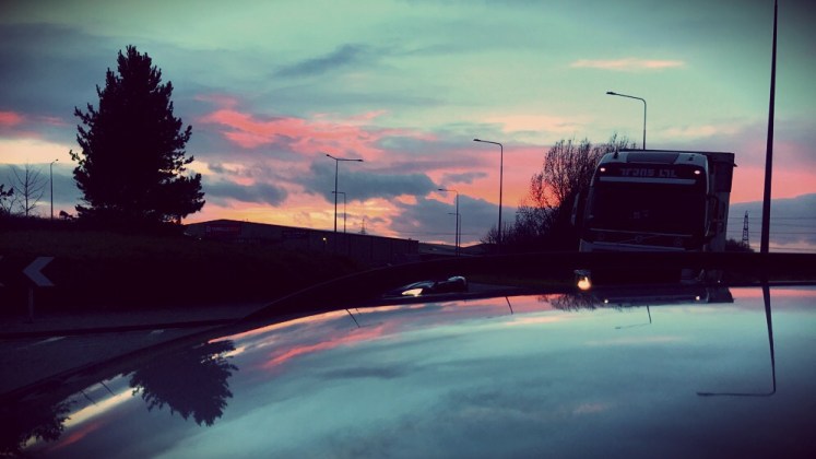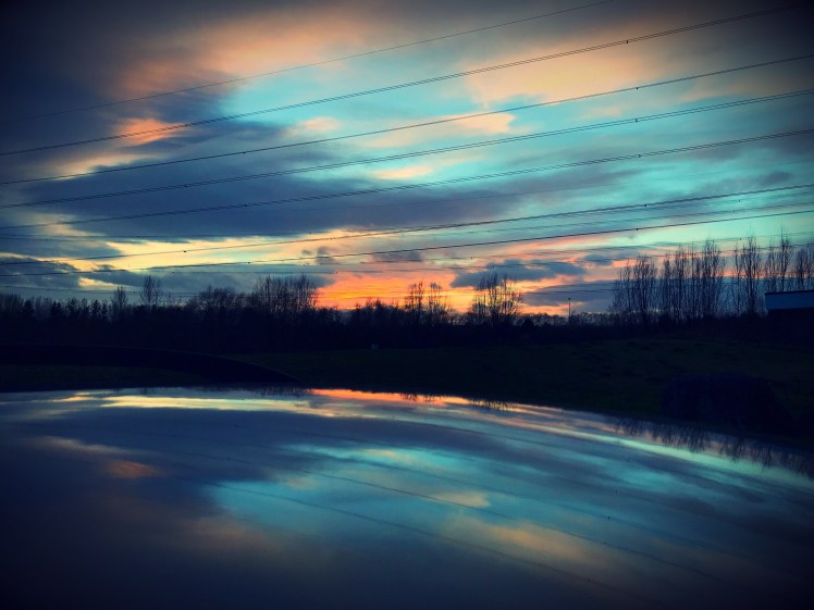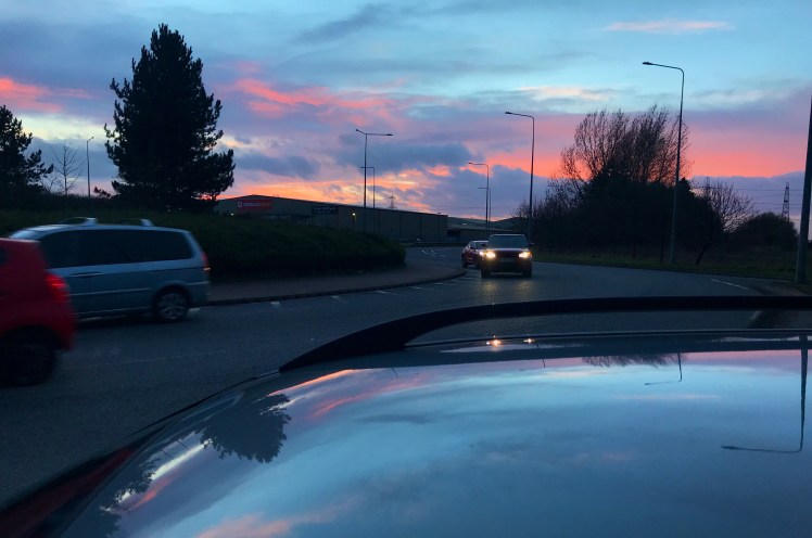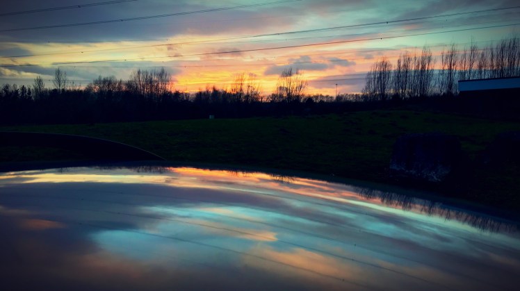 I think today was just the inspiration provided by the view of the setting sun, the fact I’d missed out on capturing it last week, the pictures I’ve done recently on reflections in puddles and on cars and of course my imagination.