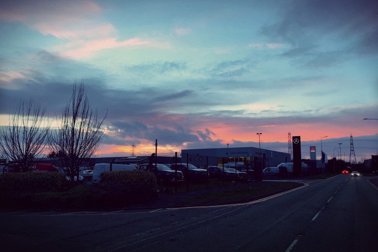 I set off for home, and with the range on my car saying a measly 16 miles, I swung into the nearest garage. As I did, I noticed the sunset, just dipping behind the horizon of my view.