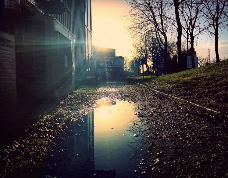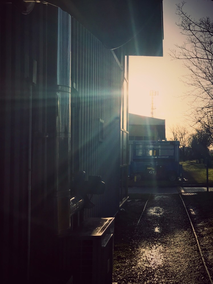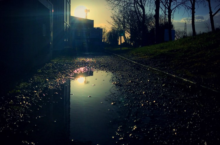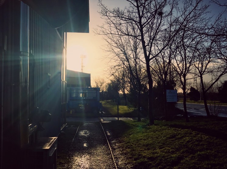 Getting in early again today, meant the sun was just peering over the industrial horizon as I walked along the front of the building to my office.