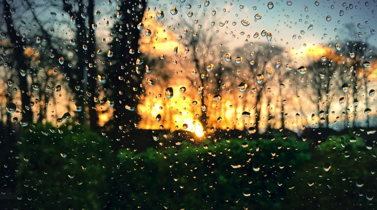 I really like the shots with the focus on the background, forcing the rain into a bokeh type effect lit by the suns rays, and I also like the ones with the droplets of rain in sharp focus.