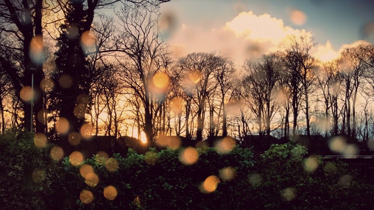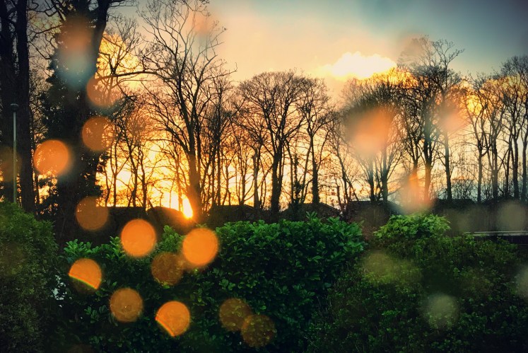 Just as we were getting ready to head off out to a birthday party – Happy Birthday Kate, we had a great time, and the girls absolutely loved it! – the sun really caught my eye shining through a gap in the distant trees, just dipping down between two houses.