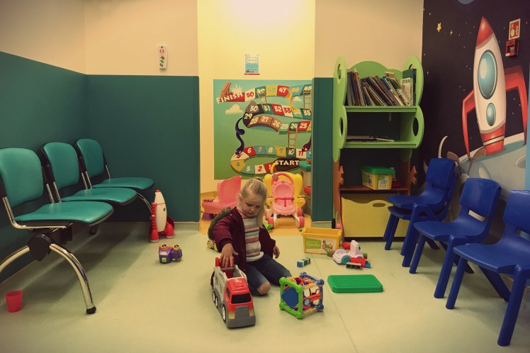 After that we waited for her X-Ray. Again we didn’t have to wait too long, and Izzy played in the kids room quite happily, telling anyone and everyone about her “bruise”.