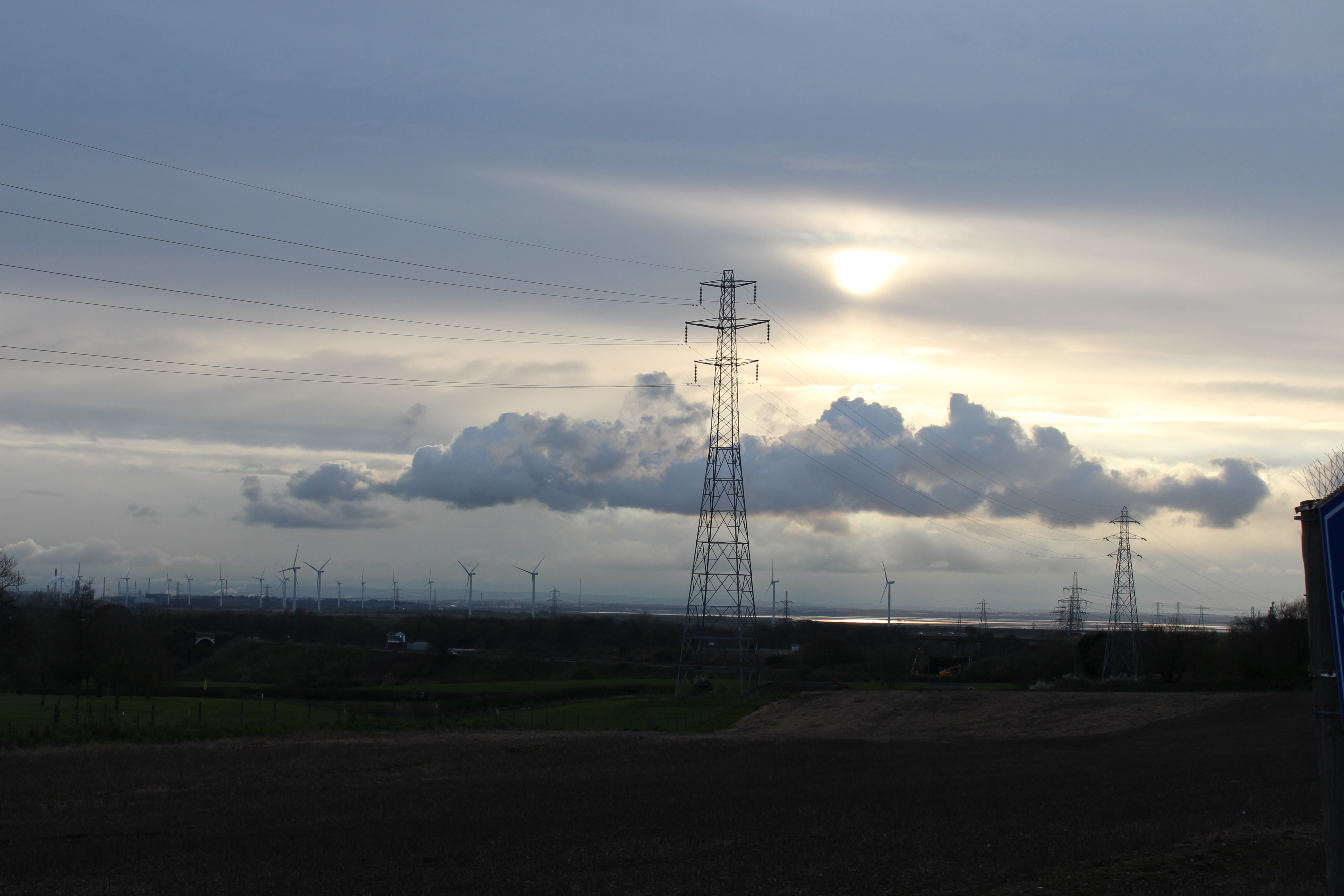 I guess it was inevitable that I would have my new camera with me to take todays photograph. I decided to go straight for the jugular, and try and take a shot I’ve wanted to take for a while, but havent been able to capture as I wanted to.Its a view from the road up the hill from where I live, and it looks out across a plane of land that stretches from Frodsham, across the River Mersey and onto the Wirral.