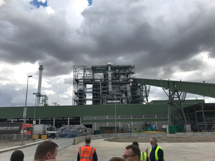 Essentially this is a paper mill (three milling machines) that uses 100% recycled material. Plus, anything it can’t turn into paper or board, it burns at super high temps to change it into electricity. The high temps prevent nasty gases being emitted.