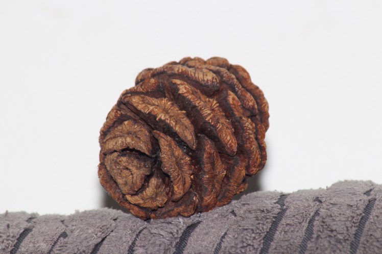 I picked a pine cone, just for something with detail I could try and photograph, and put it on the back of the sofa.