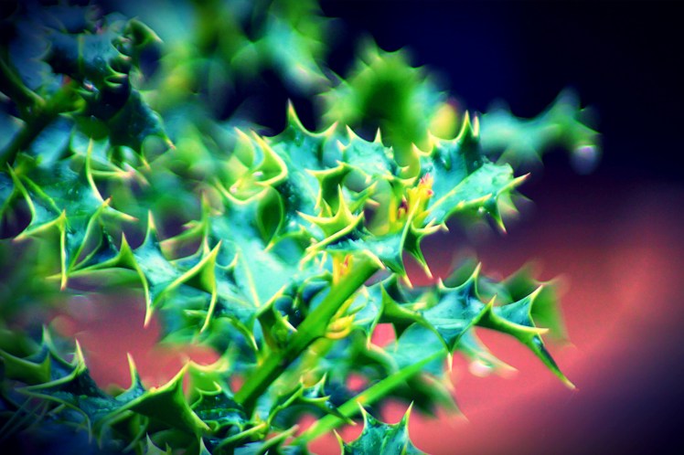 What I learnt from my research last night was, that the auto focus on the lens isn’t great in macro mode, and also you get a purple fuzz, called “chromatic Aberration”, which you can kind of see in parts of the holly shot below.