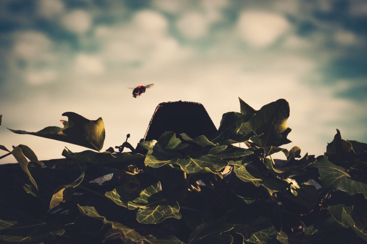 It was cool perched leaning against the shed, steadying my arms as much as I possibly could on its roof, poised with focus on the leaf nearest the area the bees were buzzing about.