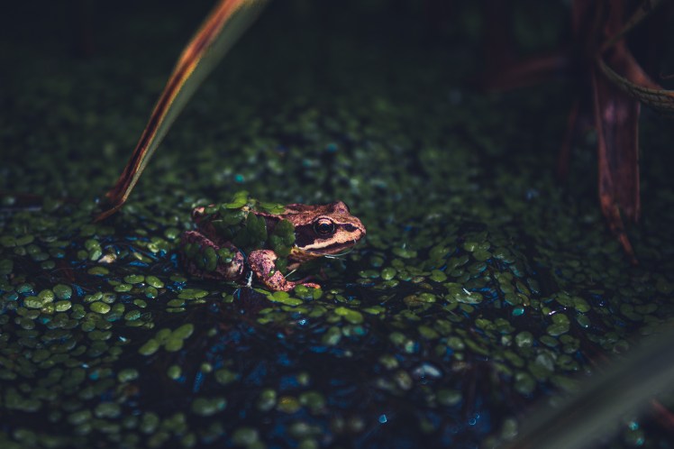 After finding loads of wood lice, worms, moths, and various other creepy crawlies, Livvy eventually led me to the pond, where she’d spotted some frogs poking their noses out earlier on.