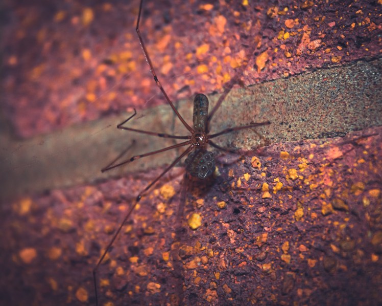 Learnings – I thought spiders would be a breeze to photograph; they’re motionless if you don’t disturb them. However, I couldn’t hold a very steady camera angle on them, mostly due to the awkward and often high up positions they were hanging around in.