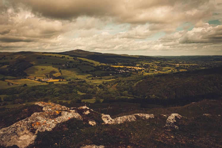 The two images below, are taken from the top of the hill, one looking over towards Moel Fammau, and the other over towards Ruthin, and onto Snowdonia.