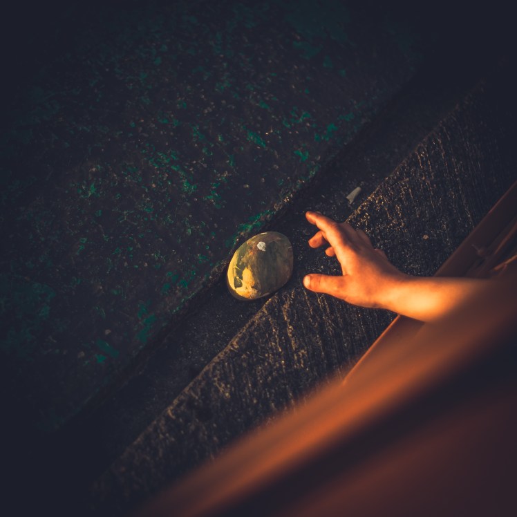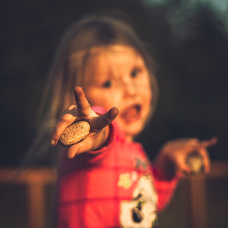 Although I knew she could get the pebbles, with a bit of stretching and squeezing, I didn’t think she’d be able to get her hand back out, clutching the pebble; and so I readied myself to help her out.