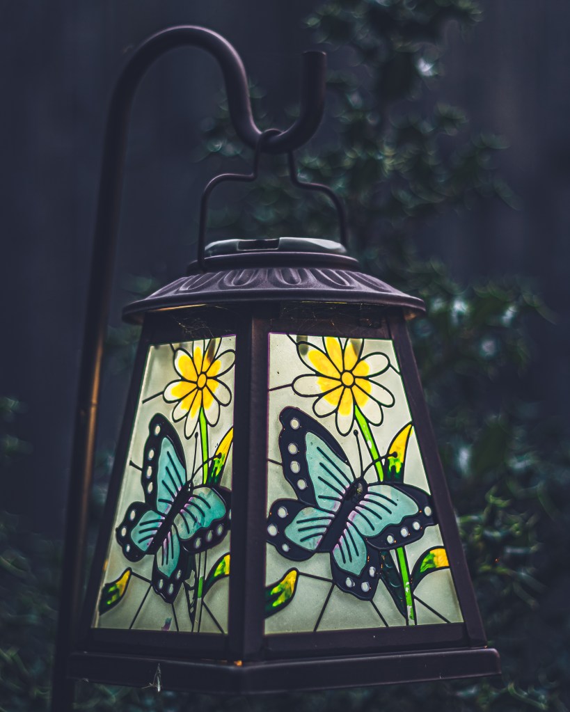 We’ve got a few solar powered lights in our garden, mostly up the top where the seating area is. To photograph these, you have a really short window of opportunity, to catch them at their best.