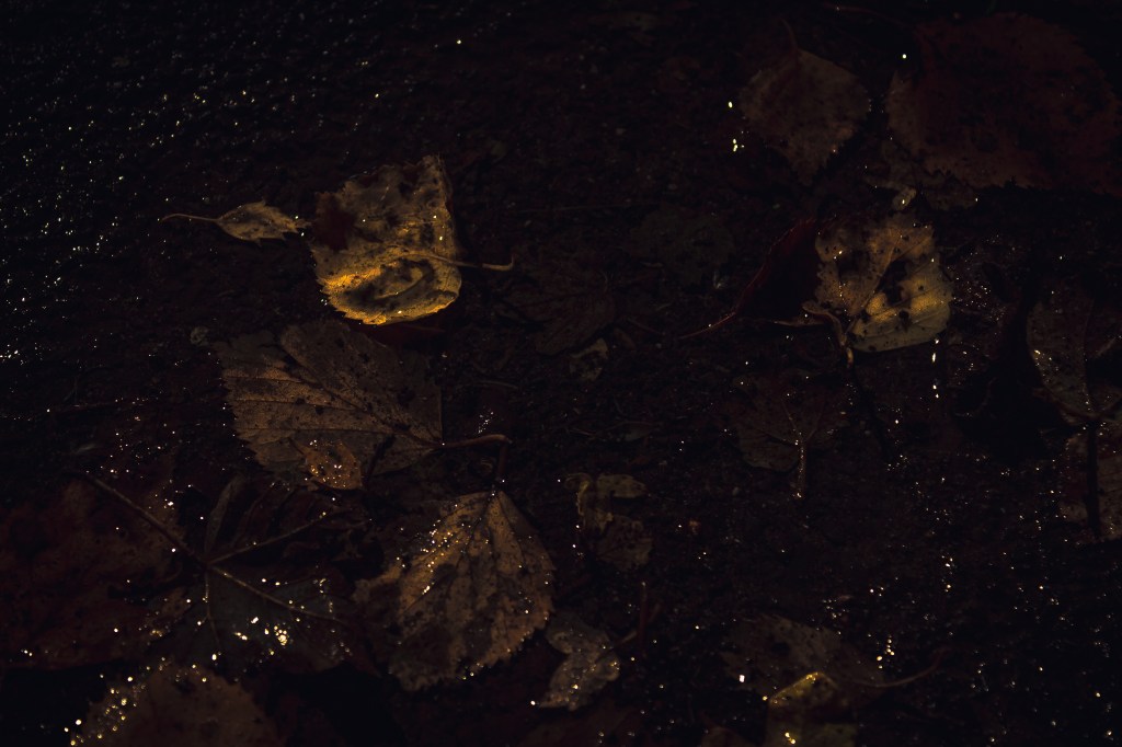 I set out into the night to capture a very specific image; following some thundering rain, I was going to capture an image of some autumnal leaves sat in a puddle of rain water, lit by a street light. Plus, I was going to use my polarising filter to cut through the water, and get a clear image of the leaves in the puddle.